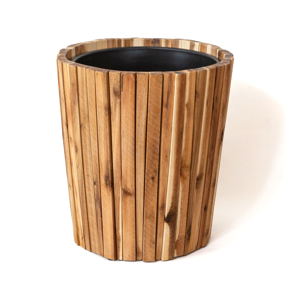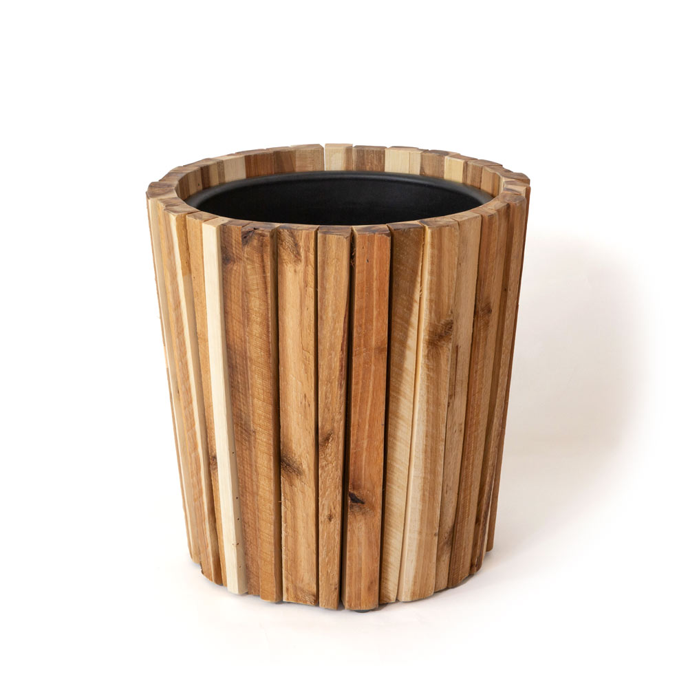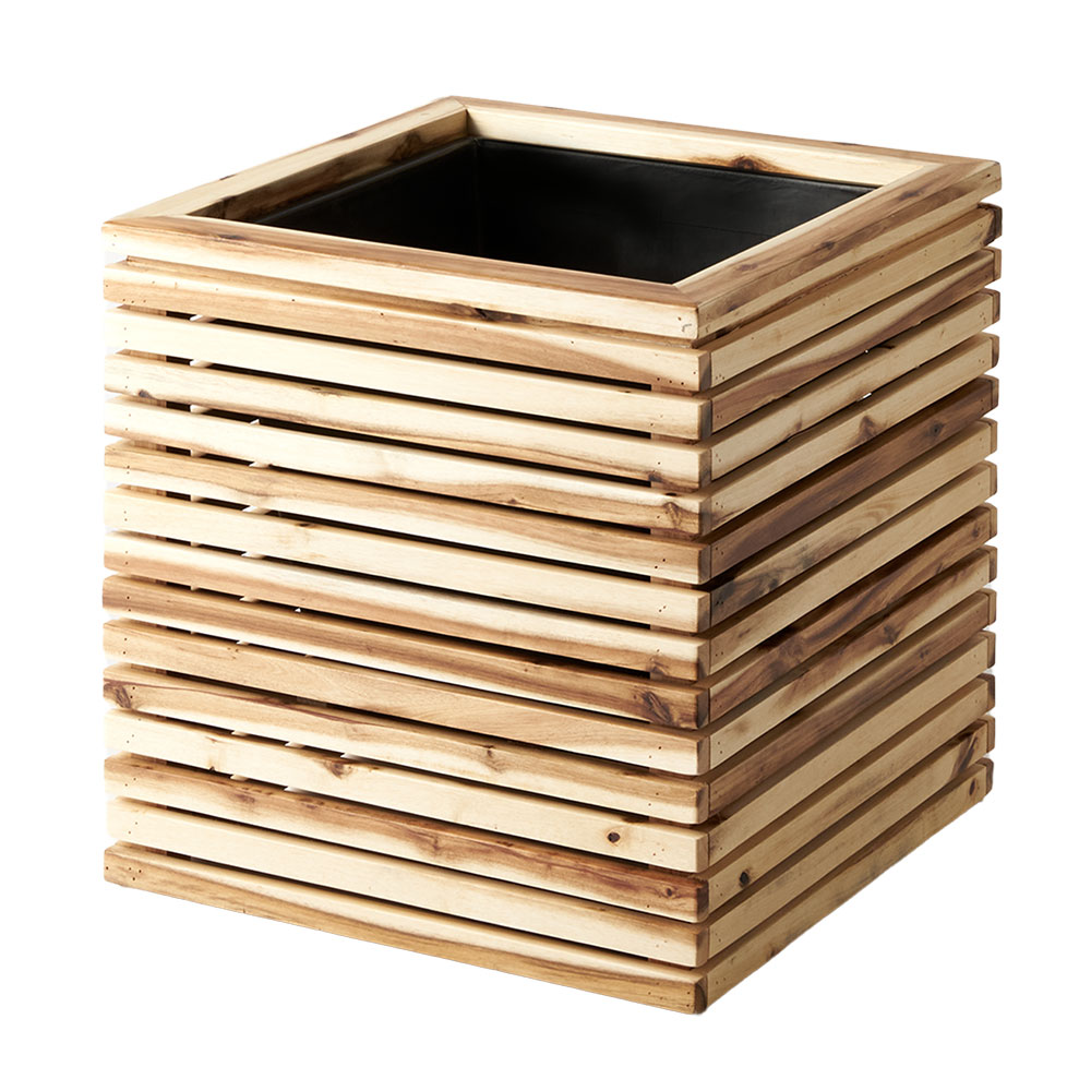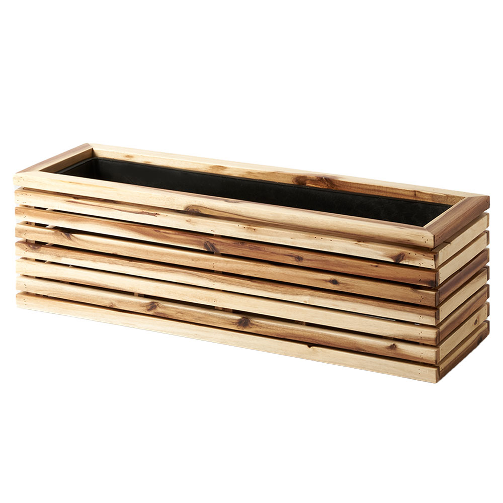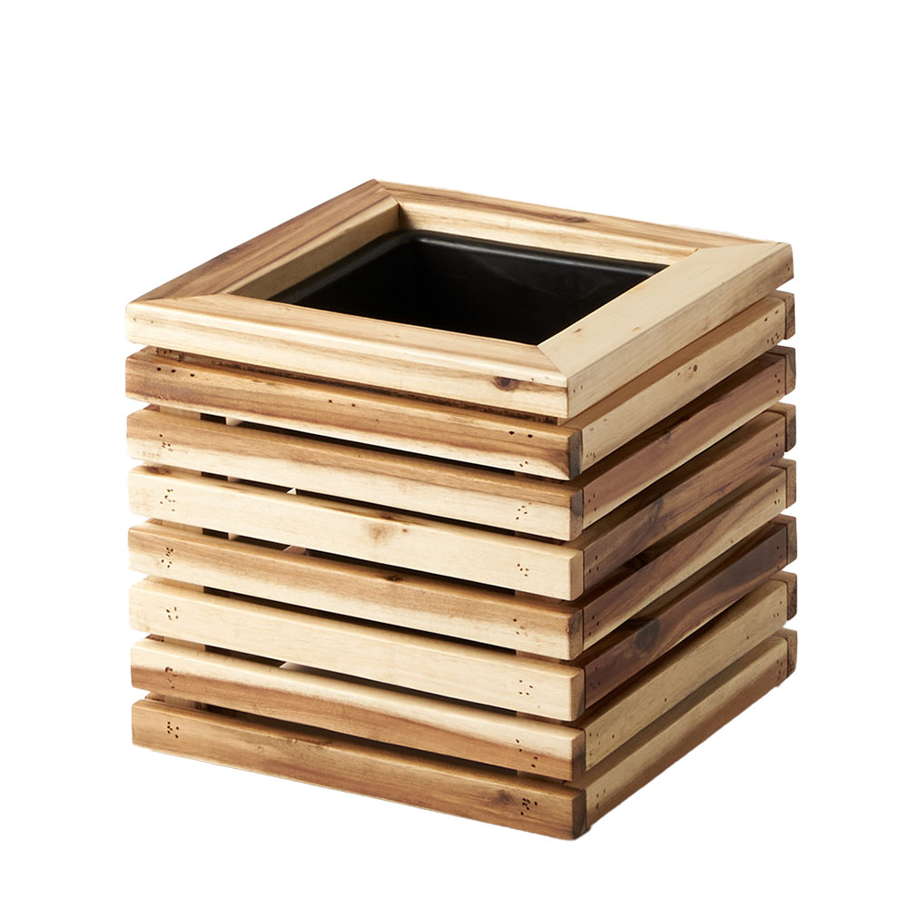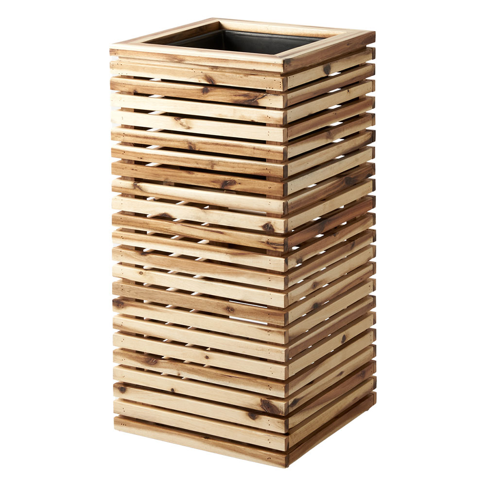 モダンなルーバーデザインの天然木プランター