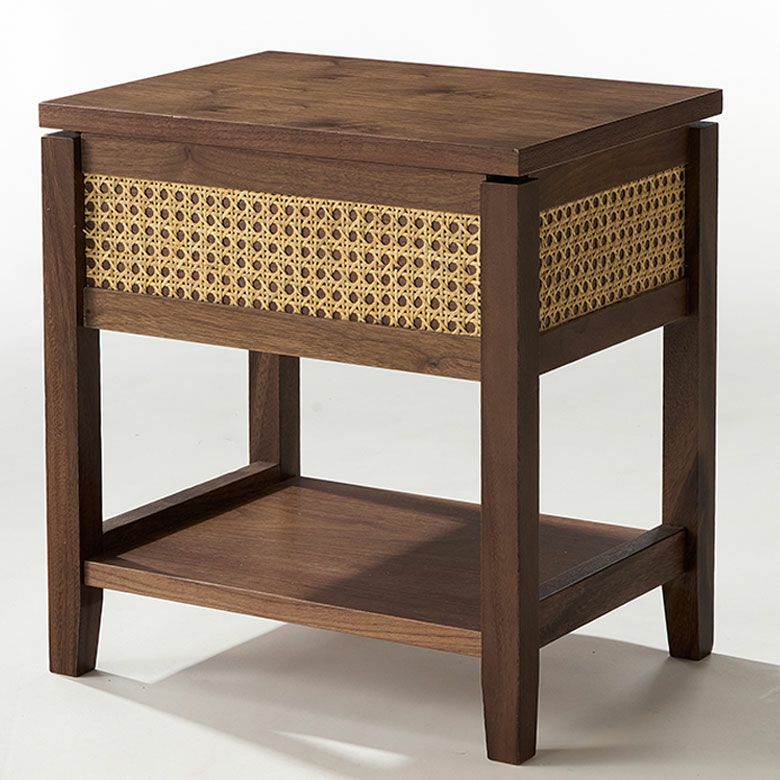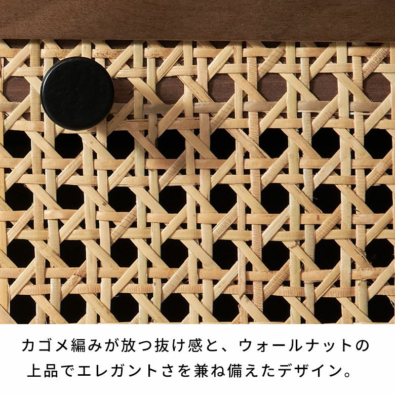 ウォールナットが醸し出す重厚感に、透け感のあるカゴメ編みのラタン(籐)を組み合わせることで