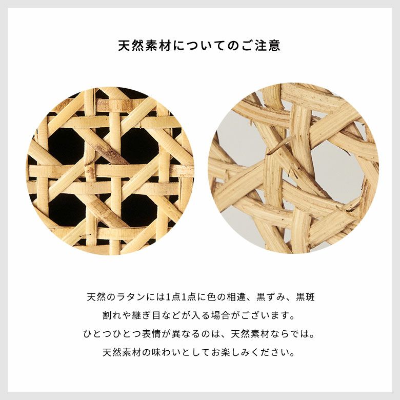 それぞれコンパクト設計で、ラタンの透け感は空間に溶け込みやすいデザイン。