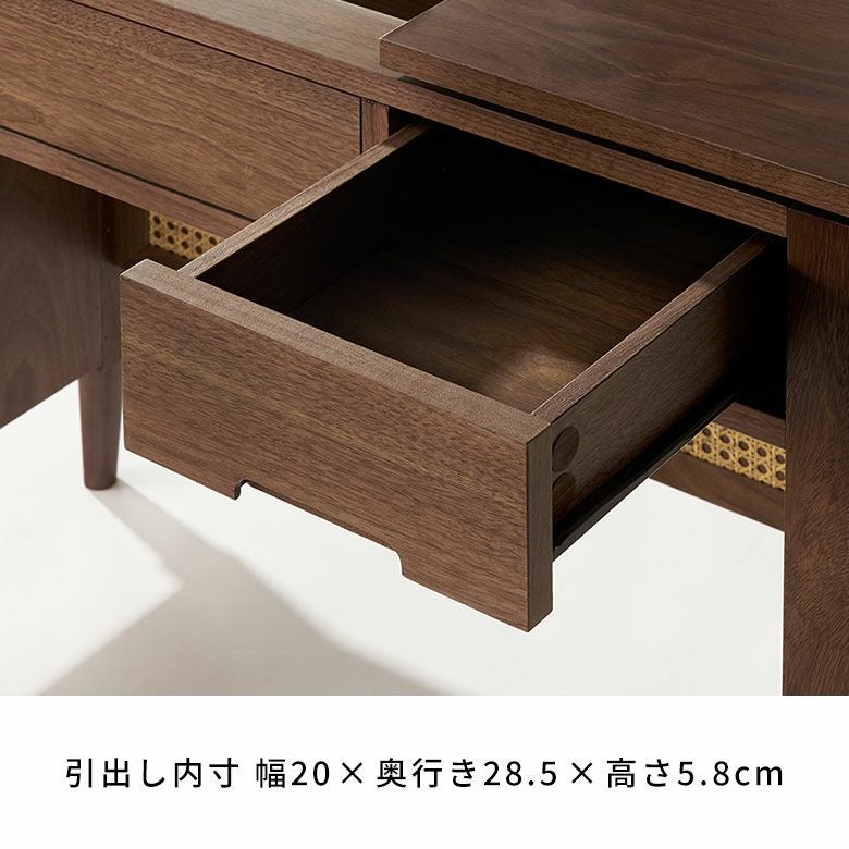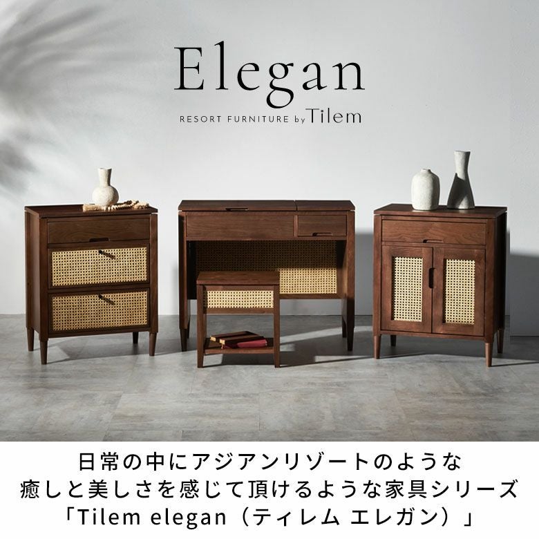 天然ラタン×天然木ウォールナットを組み合わせた「Tilem elegan(ティレム エレガン)」シリーズのアジアンモダンなドレッサーデスク。