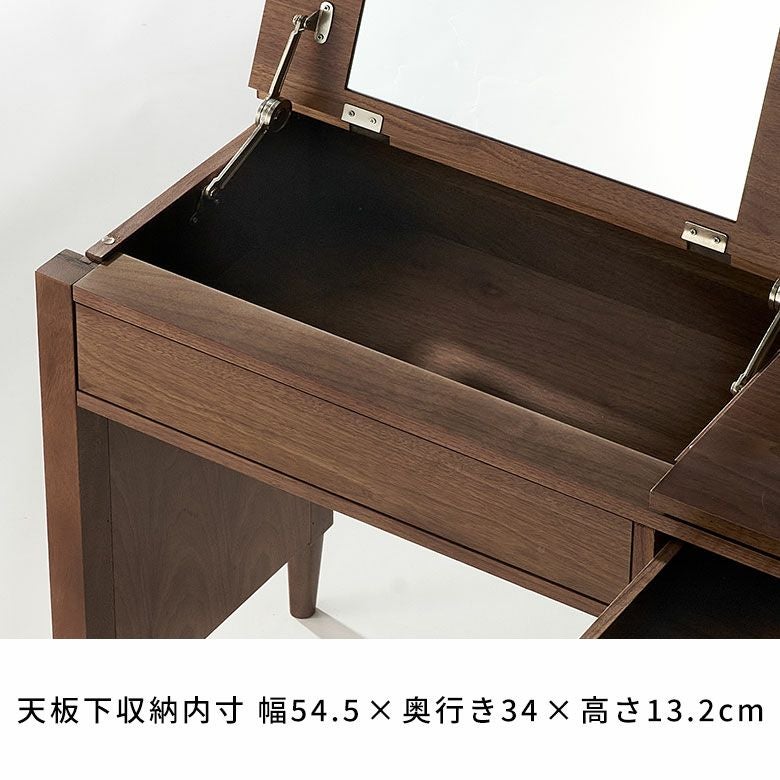 ・コスメやメイクブラシ、アクセサリーなど収納するのに便利な天板下収納付き