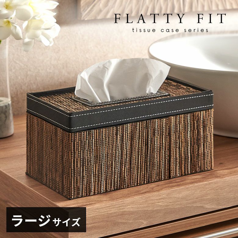 幅27×奥行14×高さ13.5cmのラージサイズは、やや背の高い厚型のティッシュや海外製のティッシュにもぴったりなサイズ感。薄型のボックスティッシュを2つ収納することもできます。ナチュラルでありながら、バリのヴィラやリゾートホテルのような上質なリゾート感を演出するティッシュケースです。