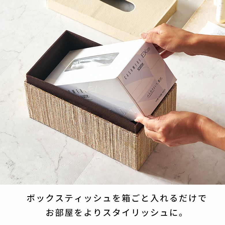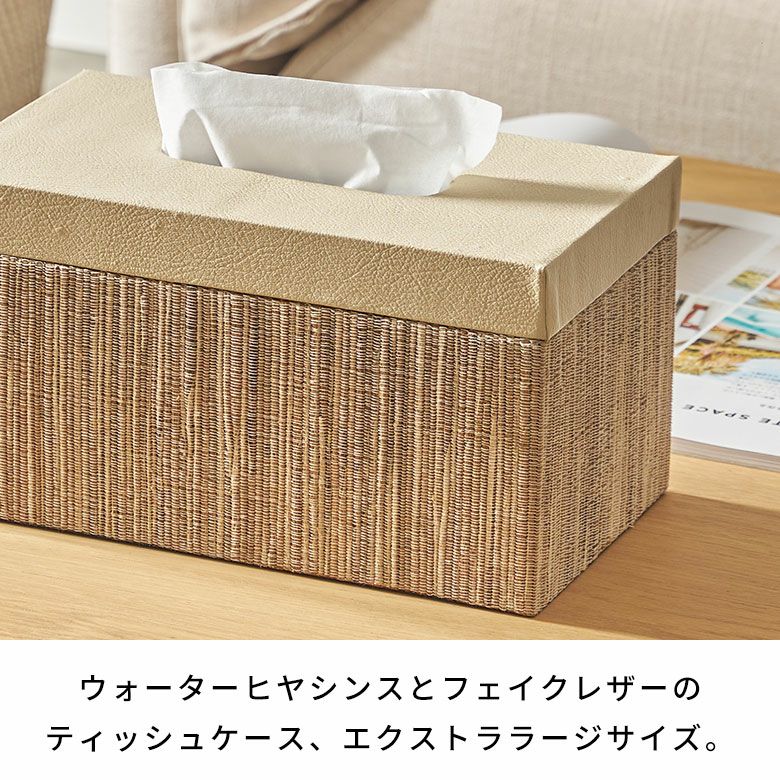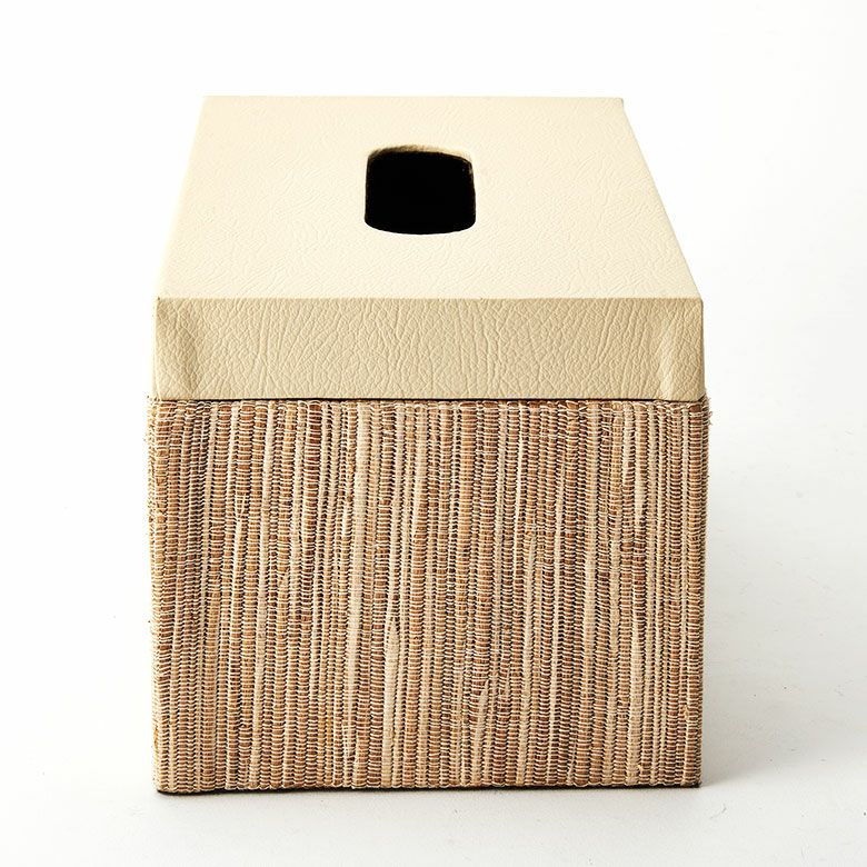 [ウォーターヒヤシンス素材×フェイクレザーのティッシュケース]