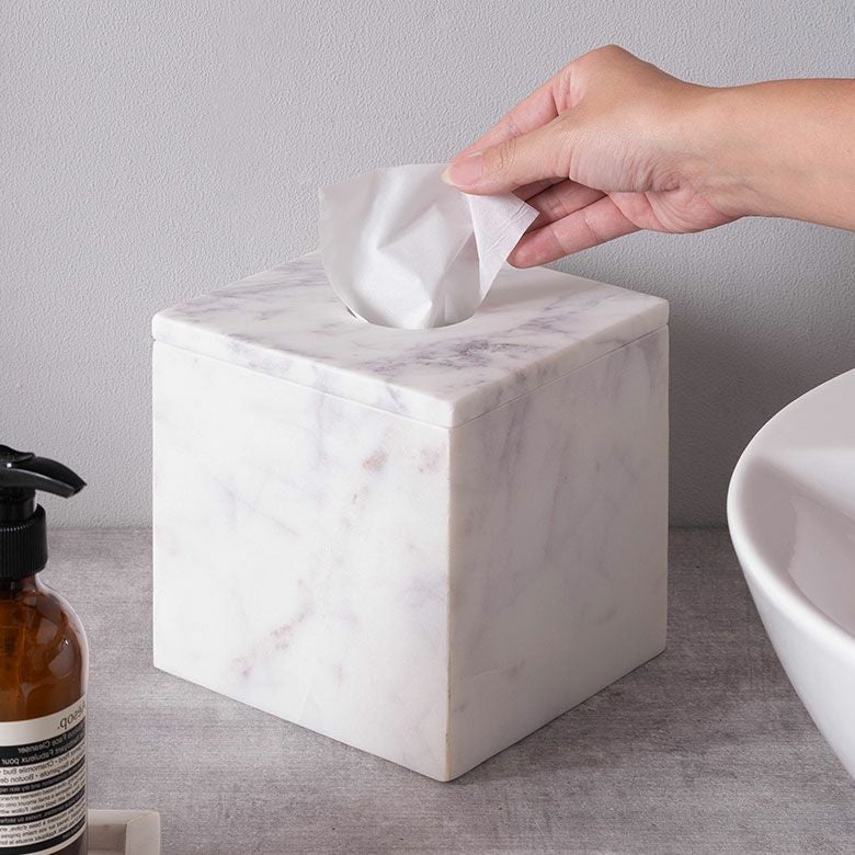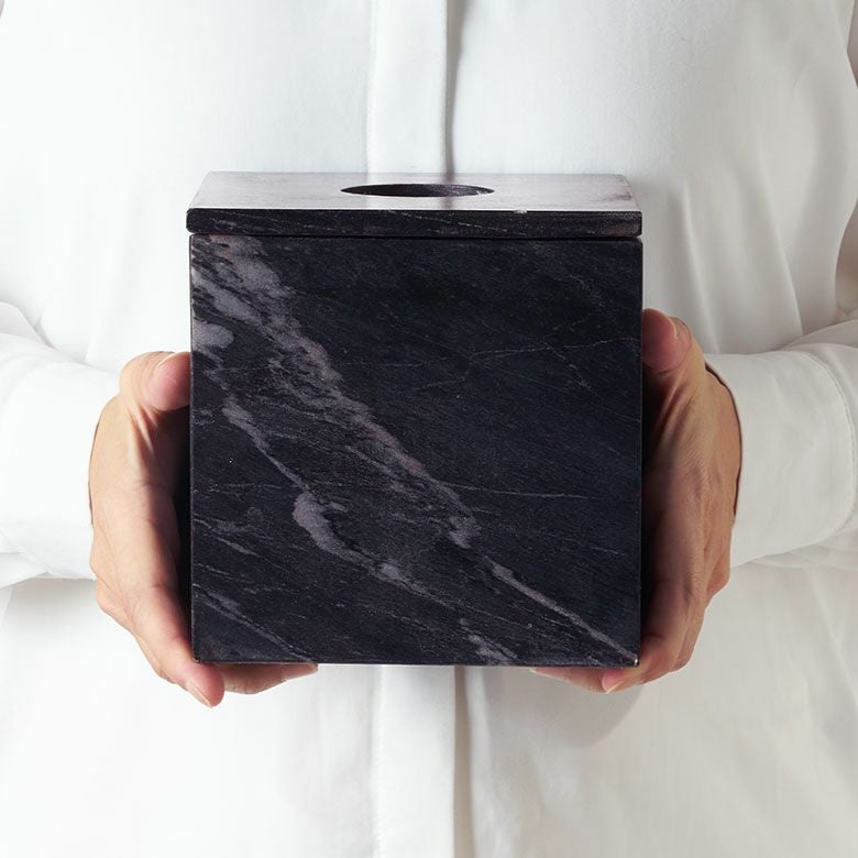 ・上質な天然大理石を贅沢に使用した、重厚感ある正方形ティッシュケース