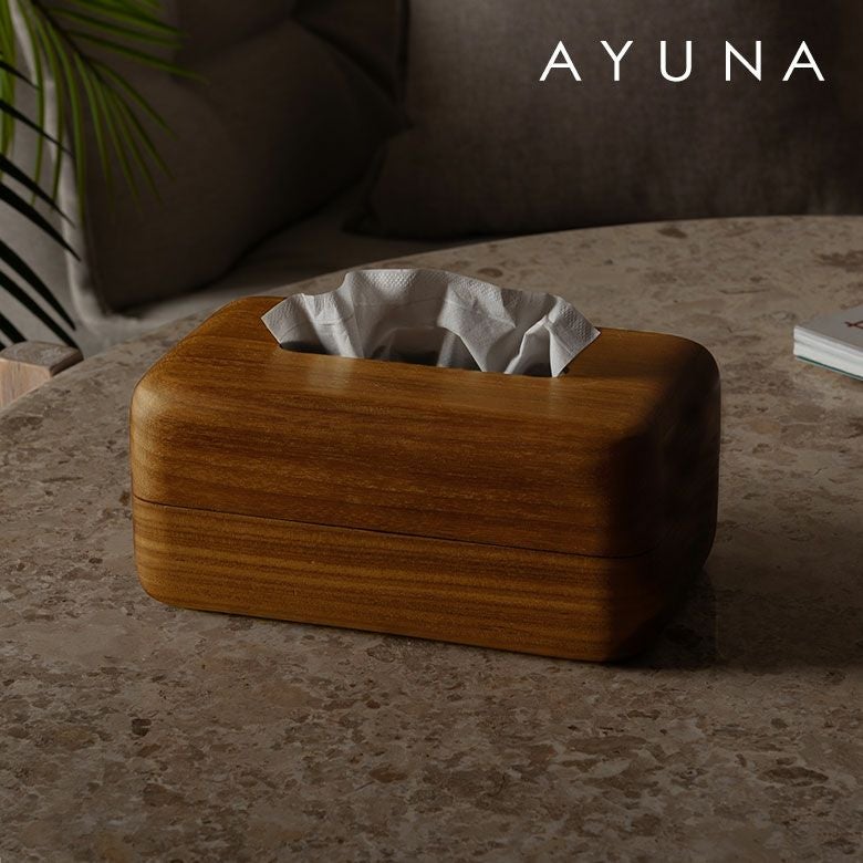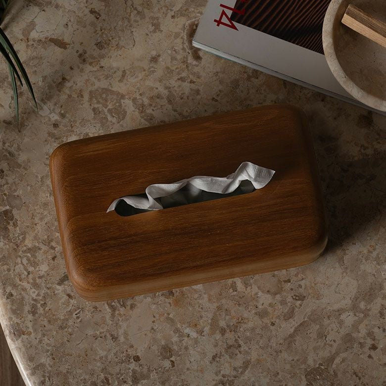 柔らかな曲線とぬくもりを感じられる木目が印象的なティッシュケース。