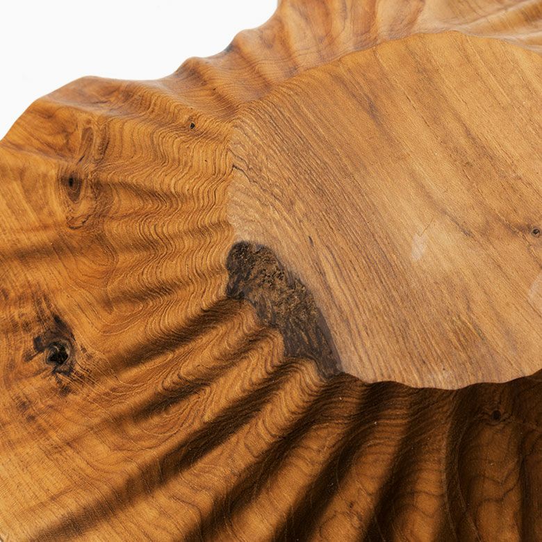 一枚のチーク材から彫り出しているので、継ぎ目がない美しい仕上がり。 |