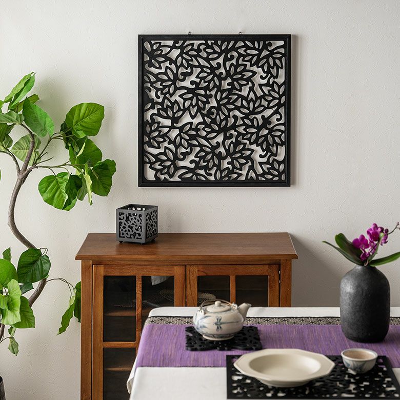 ウォール 壁 玄関 寝室 リビング ダイニング 店舗 カフェ レストラン ホテル バー ウォールアート 飾り 葉 植物 黒 ブラック モノトーン コーディネート アジアン雑貨 プレゼント ギフト アートパネル 木彫り リゾート フラワー 約 W 60cm D 2.5cm H 60cm MULIA ムリア 花 アート パネル 壁掛け レリーフ ウォールデコレーション デコレーション ディスプレイ オブジェ 木製 ウッド バリ モダン おしゃれ 北欧 南国リゾート 雑貨 インテリア アジアン [10783]