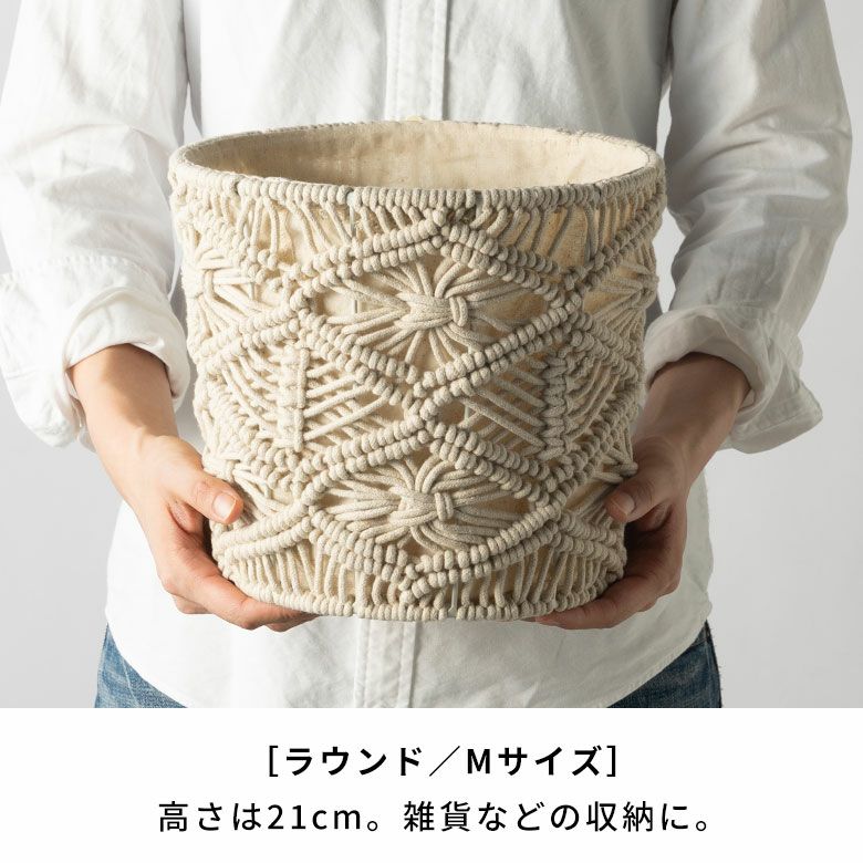 インナーケース 収納BOX リビング収納 ラック収納 インテリア収納 オープンシェルフ カラーボックス キッチンストッカー 小物入れ マガジンラック スリッパ収納 棚収納 おもちゃ入れ バスケット 収納バスケット 丸型 ラウンド Mサイズ マクラメ アイアン 約 W 25cm D 25cm H 21cm 6.6L アイボリー カゴバスケット 収納 収納ボックス 収納かご 収納カゴ 籠 かご カゴ かごバスケット おしゃれ 北欧 リゾート 雑貨 インテリア BOHO サーフ アジアン [34616]