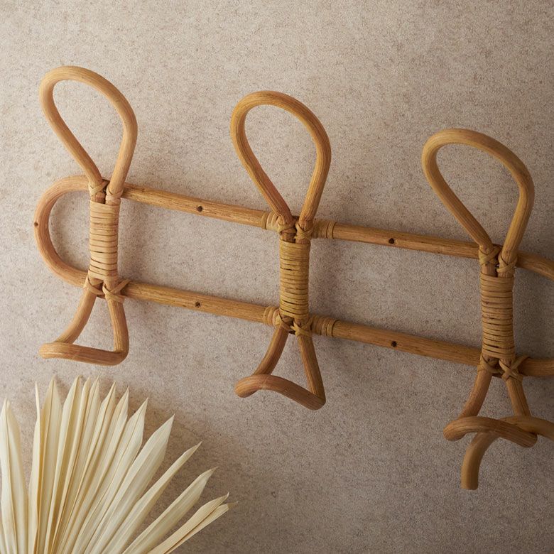 ラタンフック 壁フック 壁掛け ダブルフック コートハンガー 壁面収納 ウォールシェルフ ハンガーフック ヴィンテージ風 ビンテージ風 フック付き シンプル ディスプレイ オブジェ フック ラタン 籐 天然素材 ウォールハンガー 3連 約 W 40cm D 6.5cm H 20cm ナチュラル ベージュ 壁掛けフック 壁面 フック 壁 ウォールフック ハンガーラック ウォールラック ウォールシェルフハンガー インテリア 軽量 おしゃれ 北欧 リゾート 雑貨 アジアン [14032]