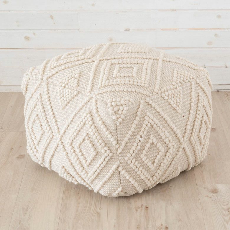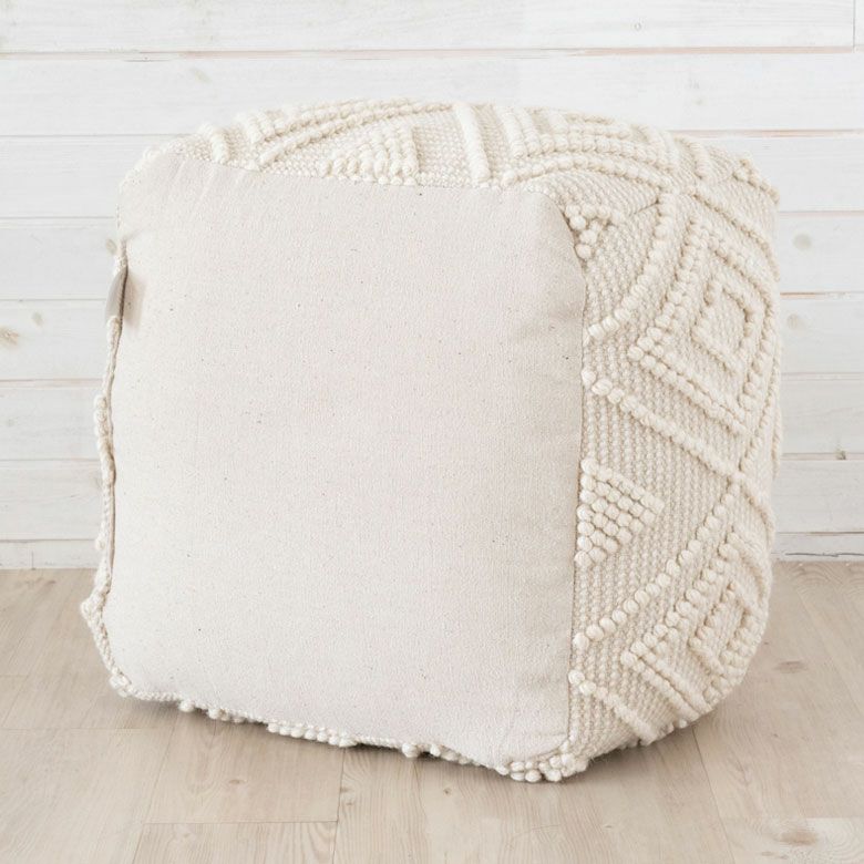 ベランピング リビング 腰掛け ビーズクッション オールシーズン プフ クッション オットマン スツール ホワイト 白 W 55cm D 55cm H 37cm [34440-iv]【 raha ラーハ フロアクッション ダイヤ柄 椅子 チェア 座椅子 四角 スクエア おしゃれ かわいい BOHO ナチュラル 北欧 リゾート モロッカン ボヘミアン サーフ アジアン 雑貨 】