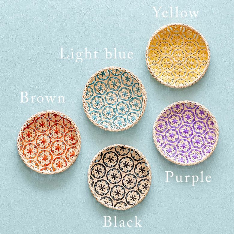 バンブートレイ フードストッカー プレートトレイ 竹細工 トレー トレイ バンブー プレート 直径 約 20cm ブラウン ブラック アイボリー ライトブルー パープル [51310]【 竹 収納 バスケット 花柄 花編み 円 サークル デコレーション パーティー レトロ おしゃれ カラフル ベトナム エスニック アジアン 雑貨 チェーホア Tre hoa 】