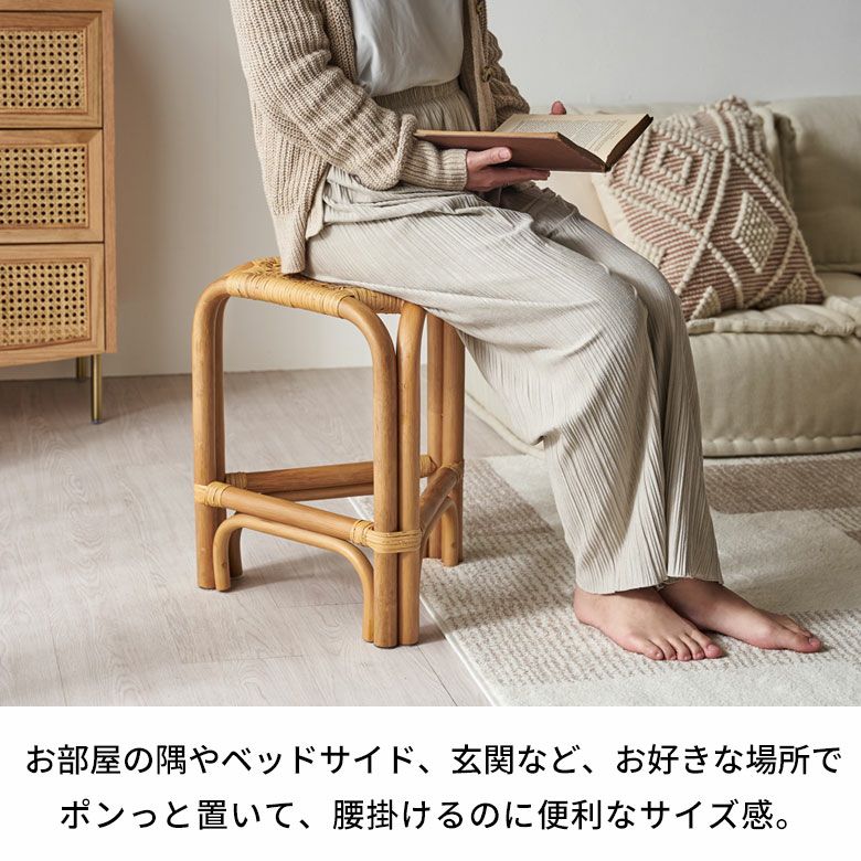 ラタンスツール 完成品 ドレッサー 脚置き 玄関椅子 玄関いす 足置き ヴィンテージ風 ビンテージ風 ドレッサーチェア シンプル ディスプレイ オブジェ 玄関 リビング 寝室 ベッドルーム スツール ラタン 籐 天然素材 チェア 椅子 いす イス スクエア 長方形 四角形 約 W 30cm D 48cm H 42cm ナチュラル ベージュ オットマン デスクチェア チェアー 腰掛 コンパクト ラタンチェア インテリア 軽量 おしゃれ 北欧 リゾート 家具 雑貨 アジアン [14034]
