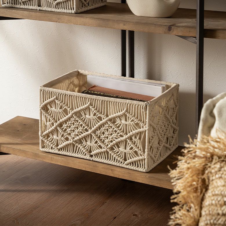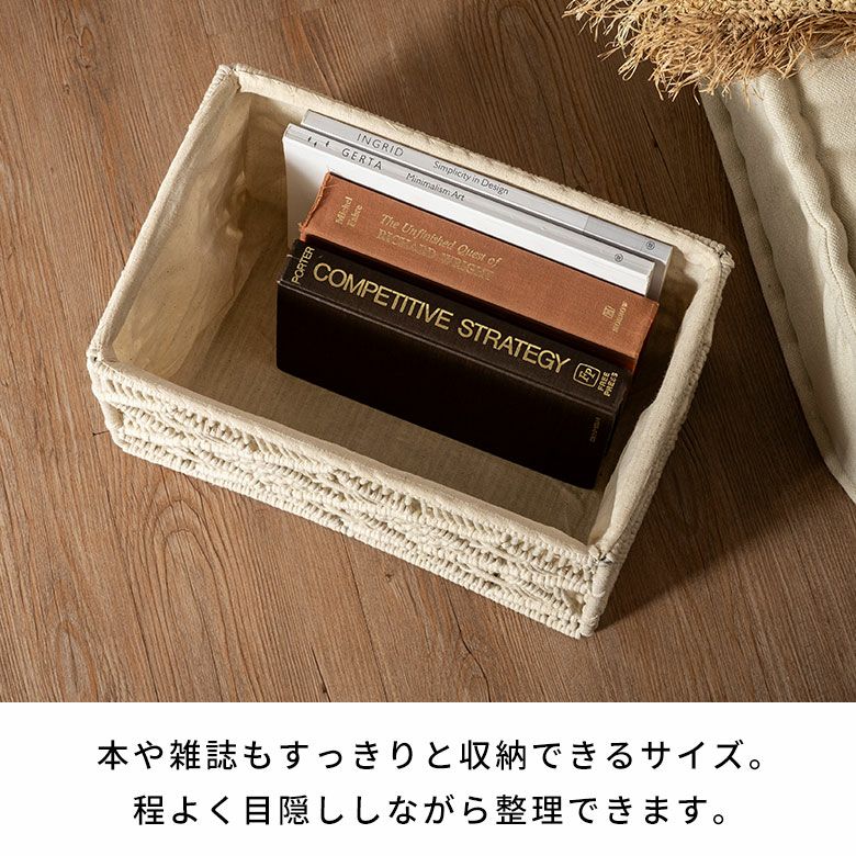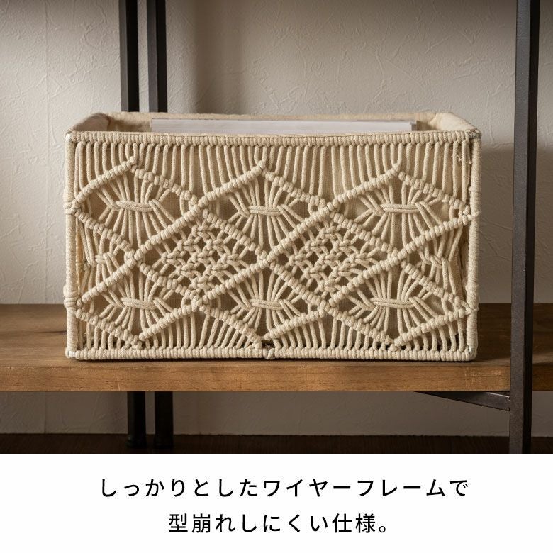 インナーケース 収納BOX リビング収納 ラック収納 インテリア収納 オープンシェルフ カラーボックス キッチンストッカー 小物入れ マガジンラック スリッパ収納 棚収納 おもちゃ入れ バスケット 収納バスケット 長方形 スクエア Sサイズ マクラメ アイアン 約 W 27cm D 17cm H 20cm 7.5L アイボリー カゴバスケット 収納 収納ボックス 収納かご 収納カゴ 籠 かご カゴ かごバスケット おしゃれ 北欧 リゾート 雑貨 インテリア BOHO サーフ アジアン [34613]
