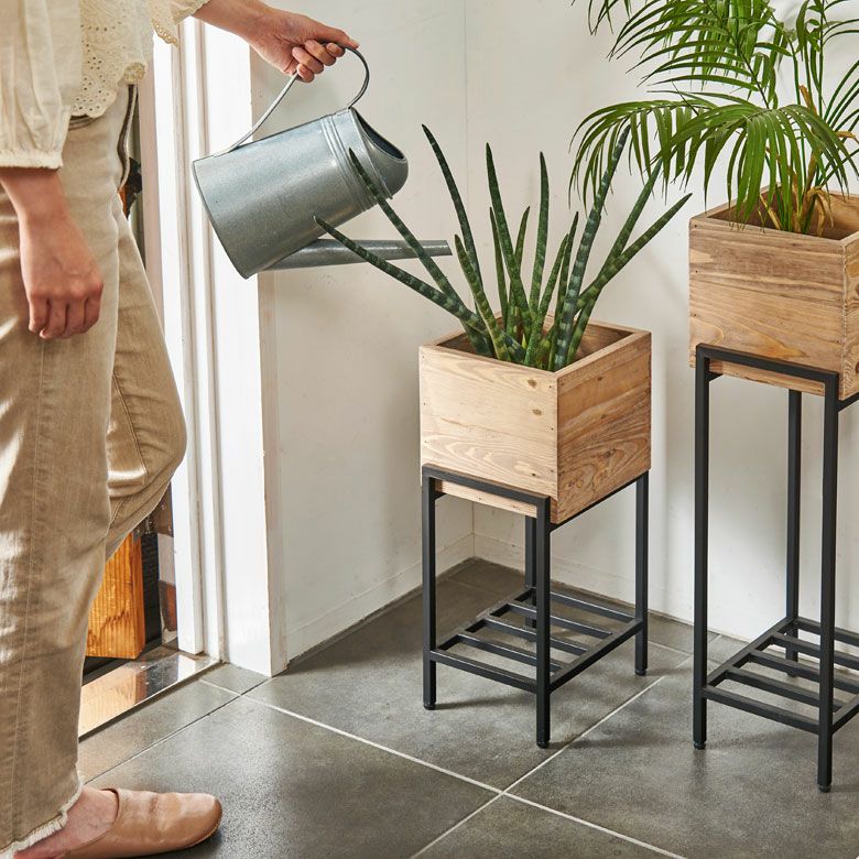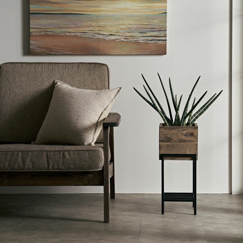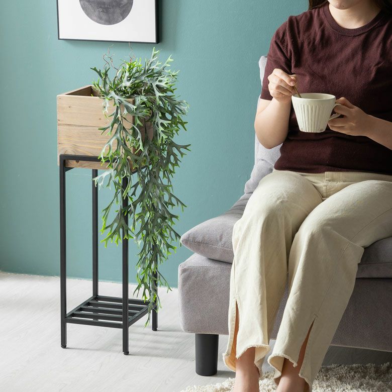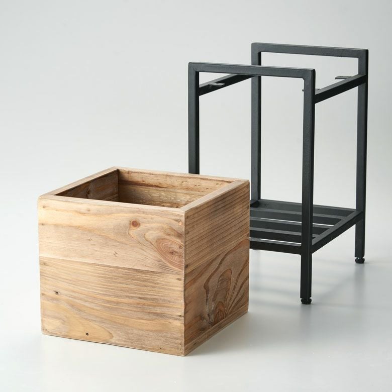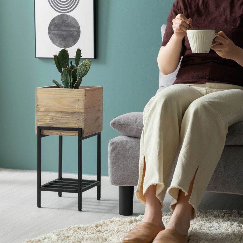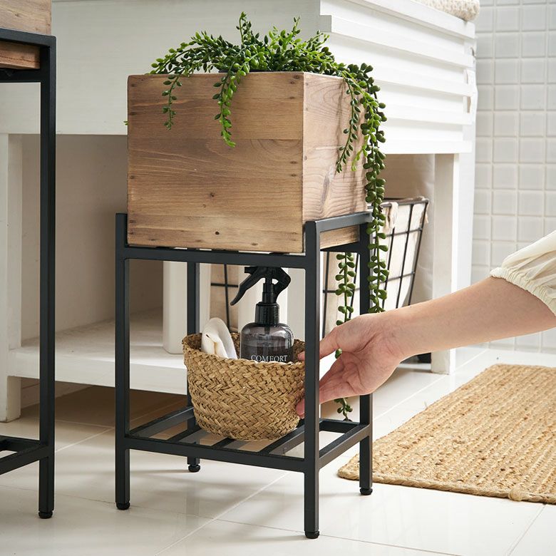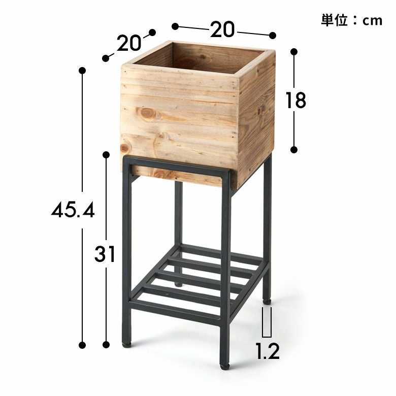 ウッドプランター アップサイクル 天然木 花台 鉢台 観葉植物 植木鉢台 プランター台 鉢スタンド 園芸ラック ガーデンラック 大型 大きい ボックス リビング カフェ 開店祝 ガーデニング プランタースタンド 脚付き アイアン 木製 パイン材 ショート 正方形 5号鉢対応 約 W 20cm D 22.8cm H 45.4cm ボタニーク Botanique プランター シェルフ プランターカバー プランターラック フラワースタンド 室内 黒 ブラック おしゃれ 北欧 アジアン家具 [g-51]