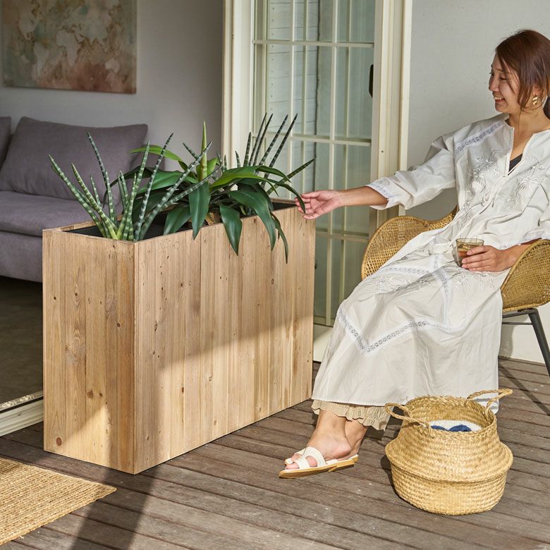 プランター プランターボックス カフェ 北欧 インテリア 雑貨 観葉植物 グリーン 木箱 花台 室内 四角 DIY 中型 中型プランター 中型植木鉢 パーテーション 間仕切り レストラン プランターカバー ウッドプランターボックス ウッドプランターカバー スクエア トール Mサイズ 7号用 トリプル ワイド 幅広 インナーポット付き 底穴なし 約 W 93.5cm D 33.5cm H 65cm 植木鉢カバー ウッドボックス 店舗用 おしゃれ Botanique ボタニーク アジアン [51338]