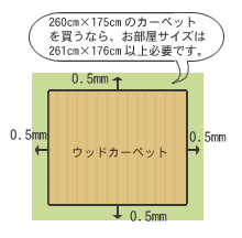 フローリングカーペットは、お部屋サイズよりも1cm程小さいサイズをお選びください。