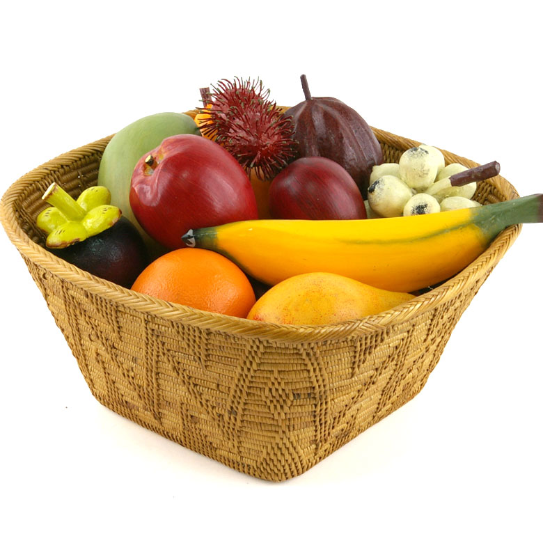 バリ島で作られた木彫りのフルーツオブジェを飾るとさらに素敵! |