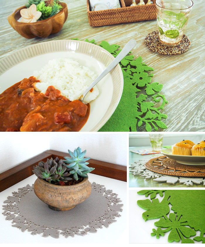ラウンド型なので、植物や小物を置く敷物にもおすすめ!プレースマットは、