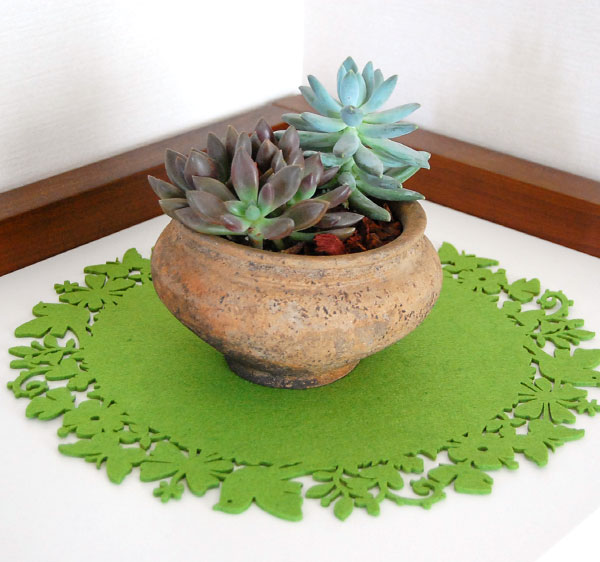 ラウンド型なら鉢植えやオブジェの敷物にも◎!印象的に小物を惹き立ててくれます。 |