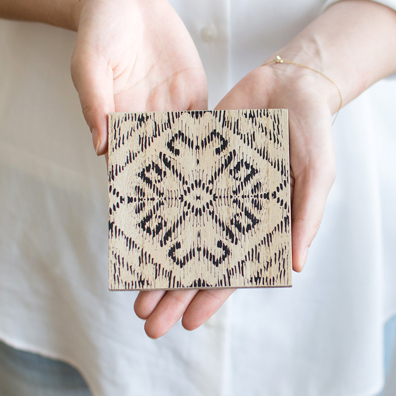 アジアンテイストなデザインを、アナログ調にプリントしたコースター。