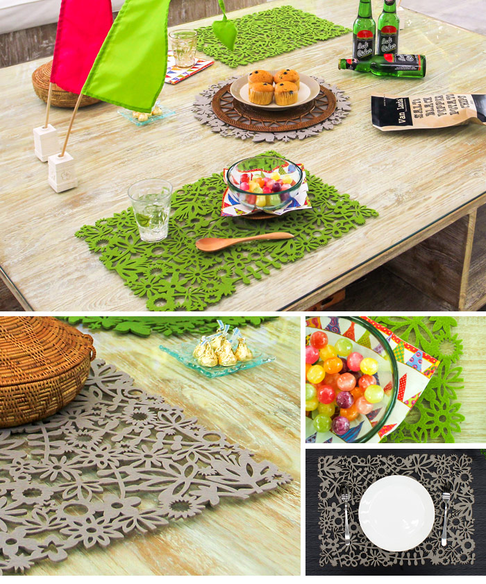 プレ―スマット。蝶や小鳥が型抜きされた、お誕生日会やおうちパーティなど、