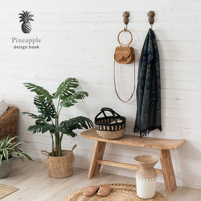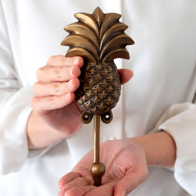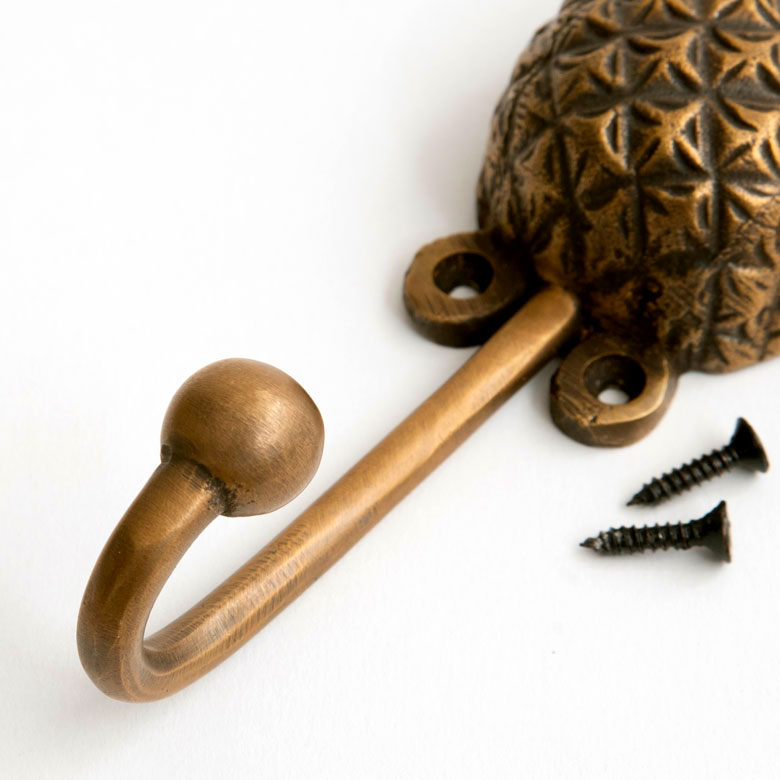 南国リゾートの雰囲気漂う、パイナップルデザインの真鍮フック。