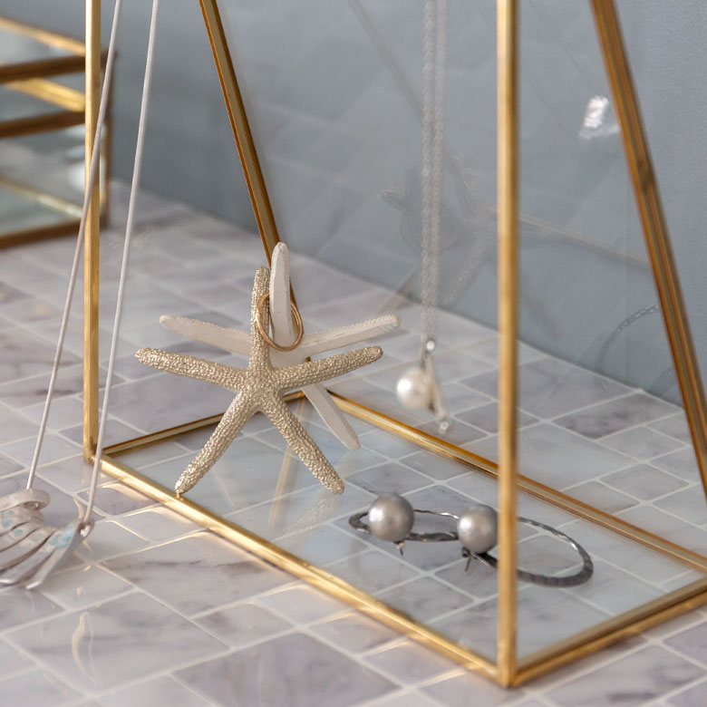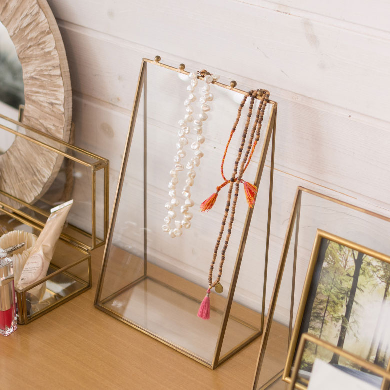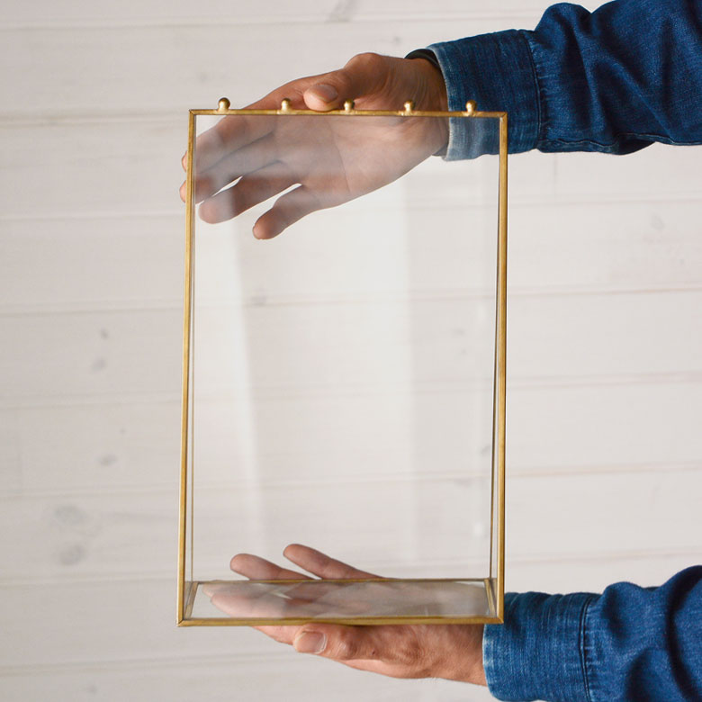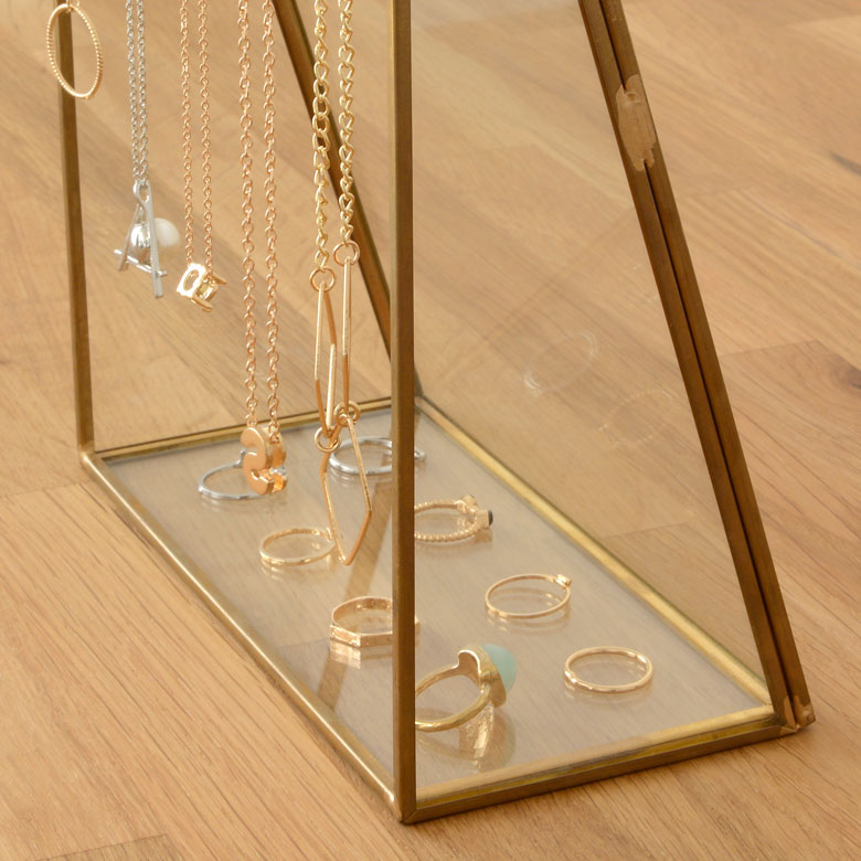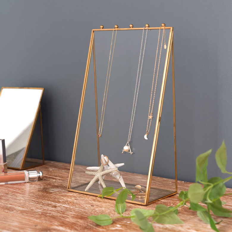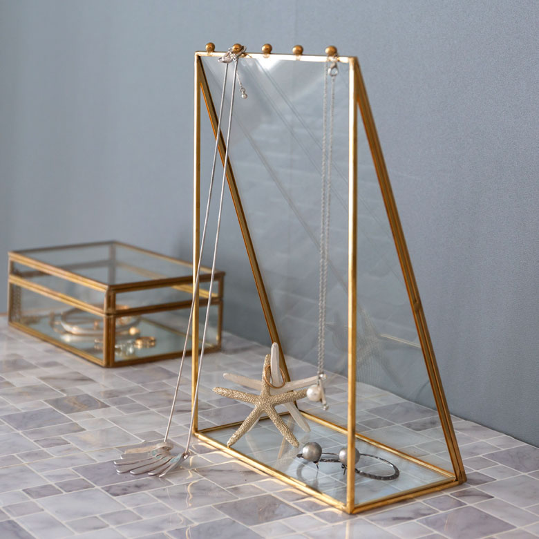 真鍮のフレームとガラスでできた、アクセサリースタンドケース。
