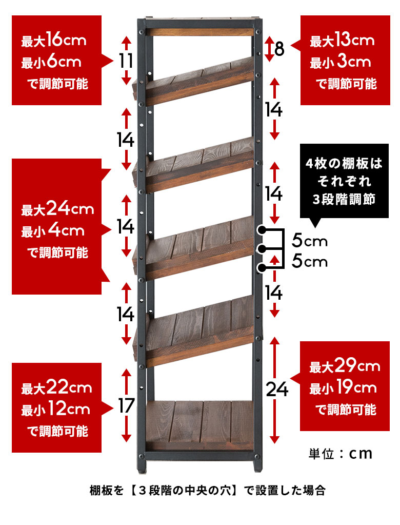 上下5cmにダボ穴があり、板のピッチを変えたり