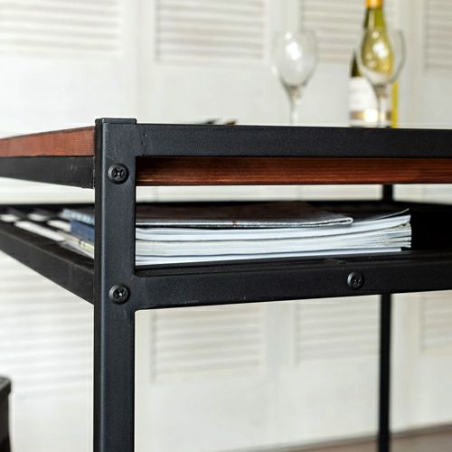 コーヒーブラウンの木部と、ブラックアイアンの脚がインダストリアルな