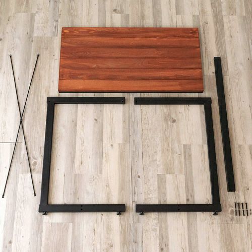 コーヒーブラウンの木部と、ブラックアイアンの脚がインダストリアルな