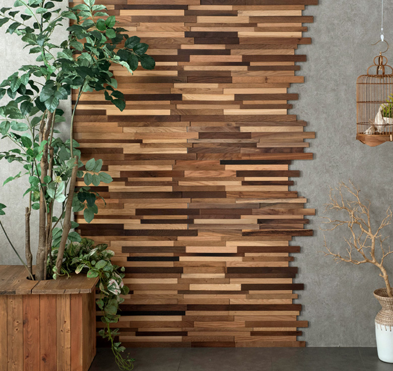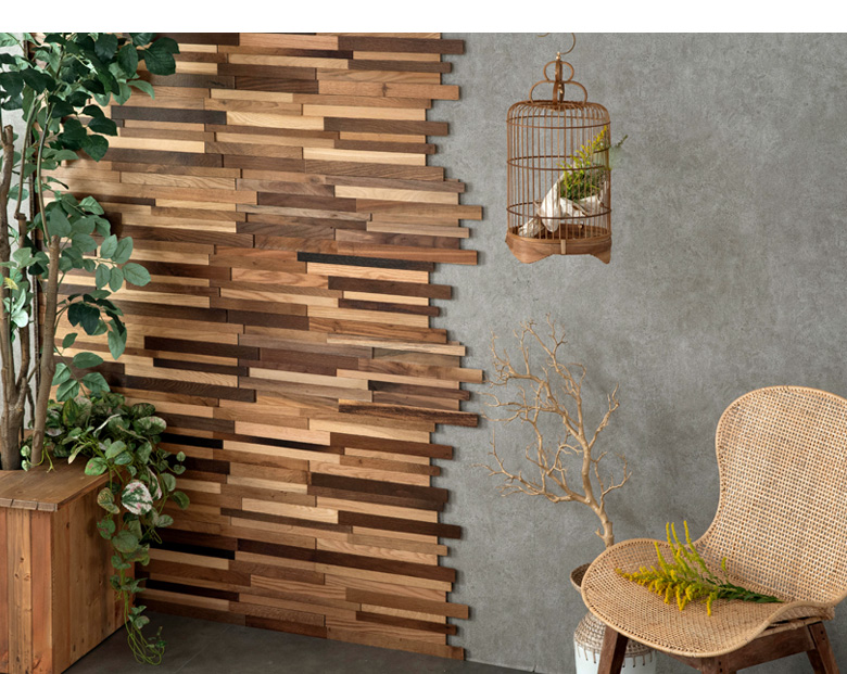 “端材の板壁”が作れる天然木パネル。