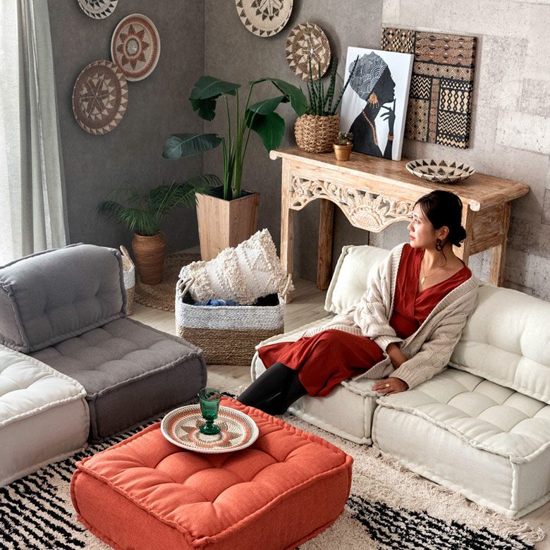 アフリカ幾何学模様のキャンバスアートとの複数使いもおすすめ。