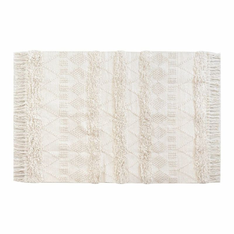 ぽこぽことした編み目が可愛らしい、ボヘミアン柄ラグ。