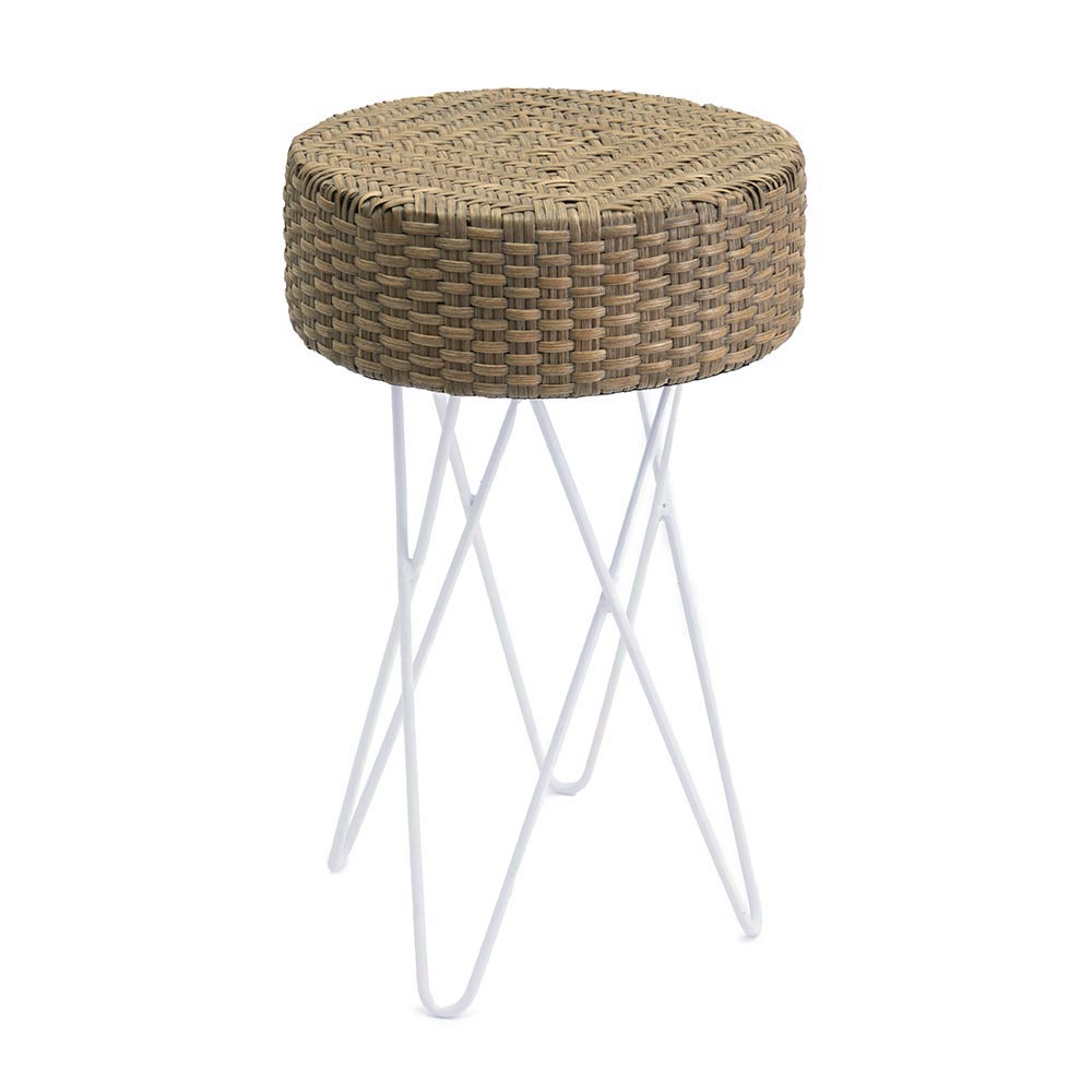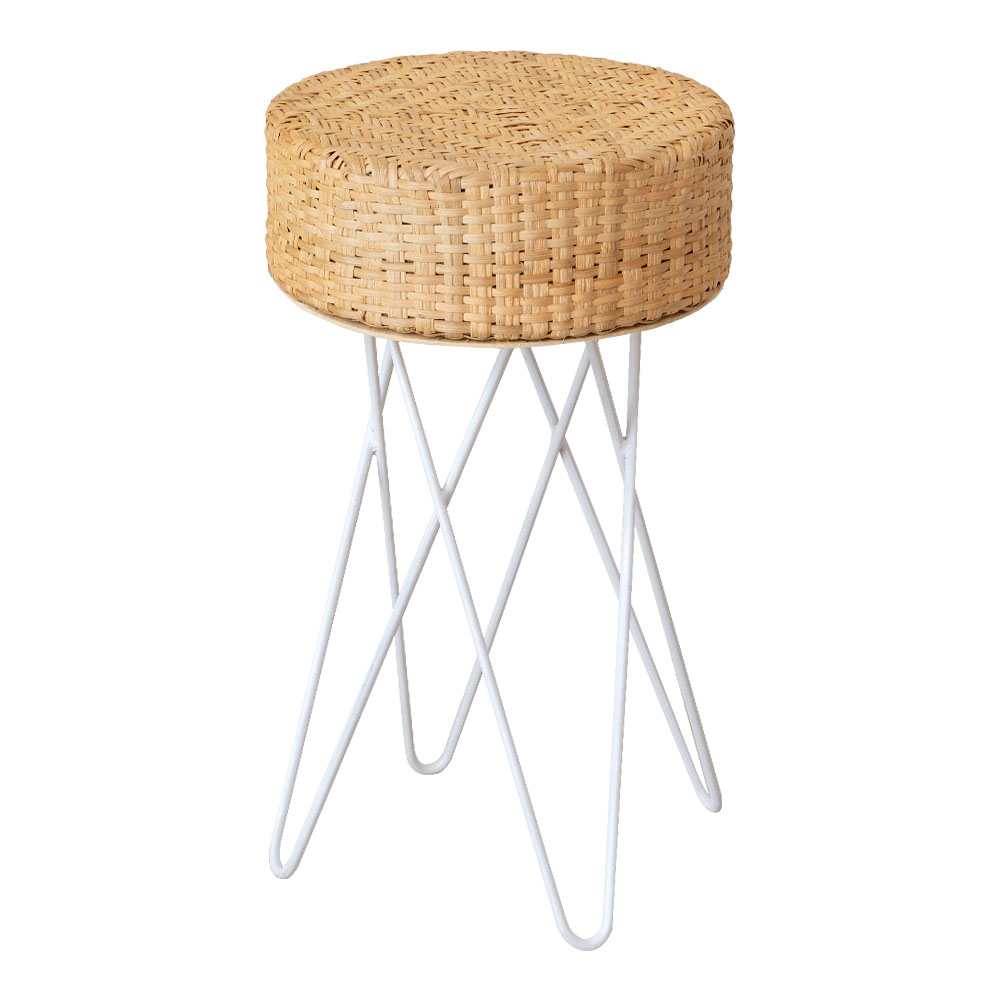 淡いカラーのラタンとホワイトのアイアンを組み合わせたスツール。