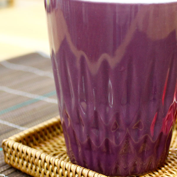 デコボコと凹凸のある模様はデザインされた陶器のタンブラーカップ。