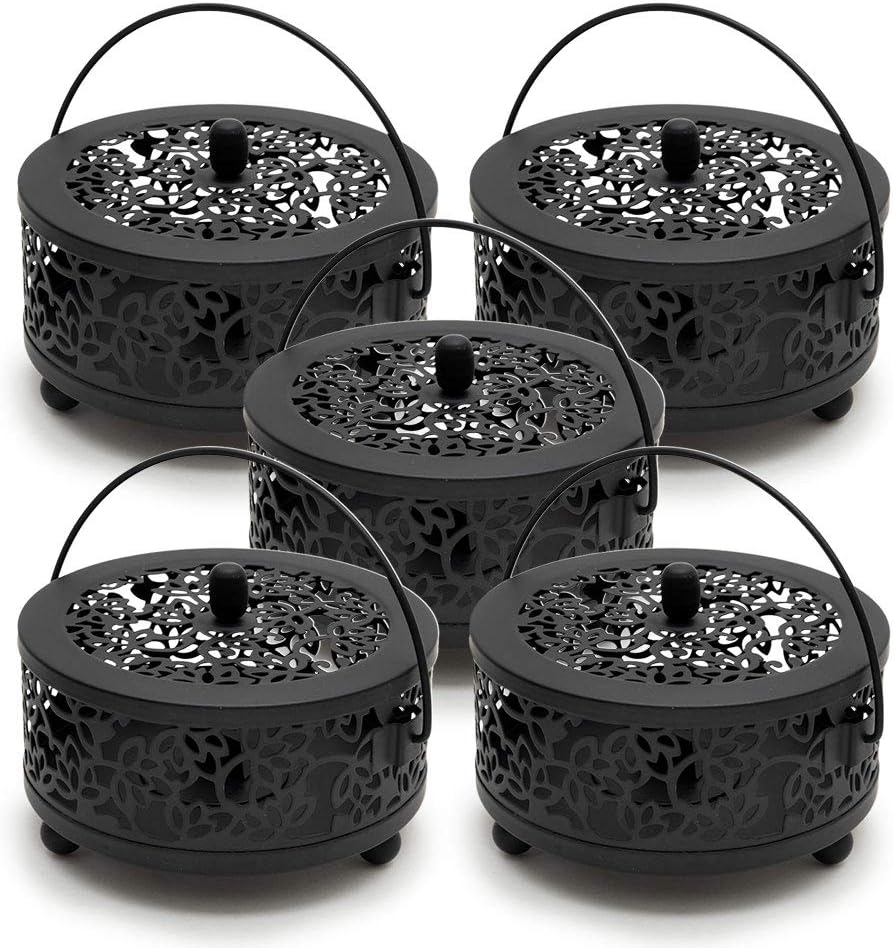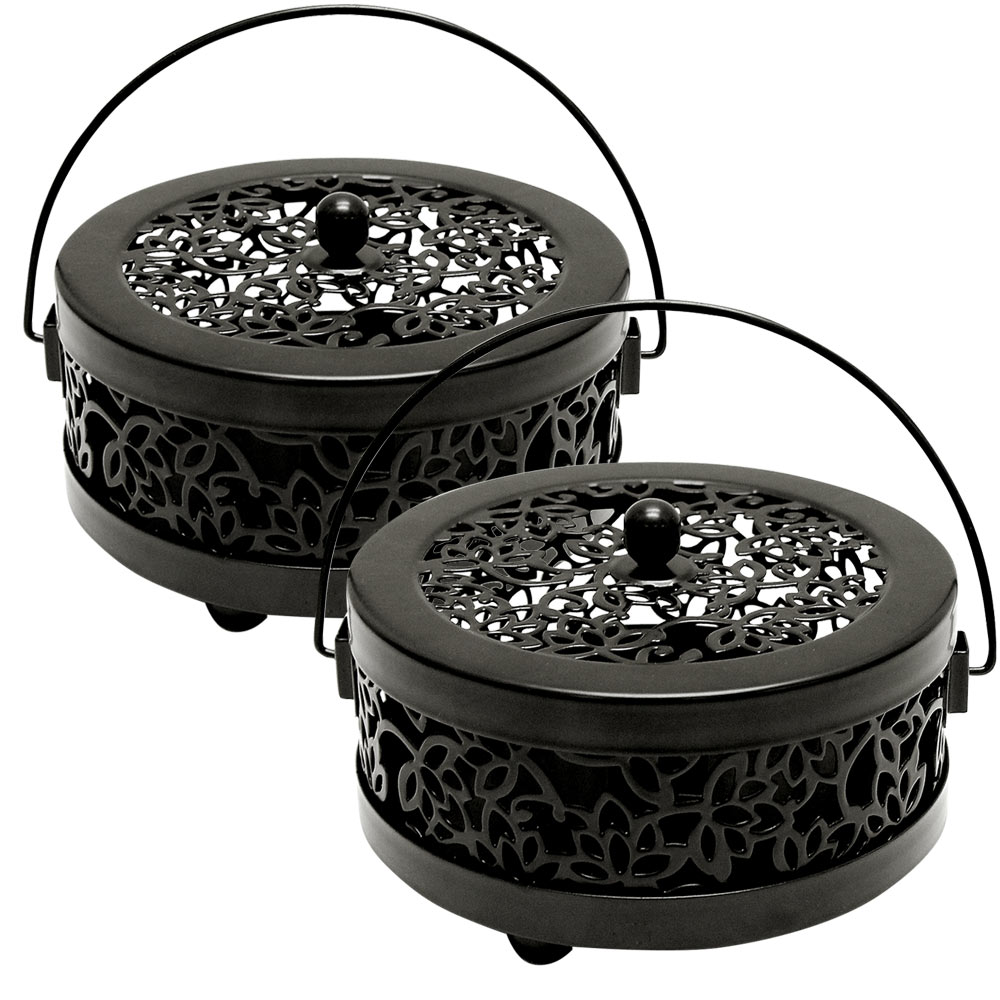 蓋つきだから中身をほどよく隠せます。ペットや小さなお子様が蚊取り線香を触ってしまうのが心配な方にもおすすめです。ハンドルも付いているので、さっと持って庭に運んだり、キャンプで吊り下げたりもできて便利。