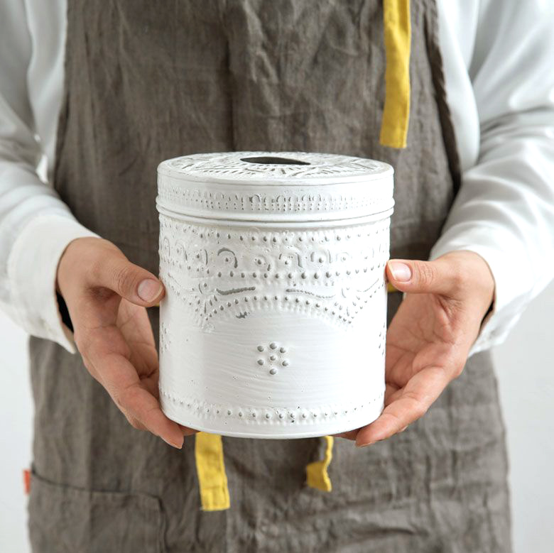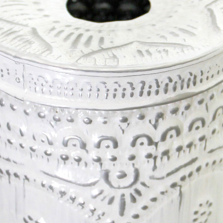 アジアンな模様が全面に施された、アルミのトイレットペーパーケース。