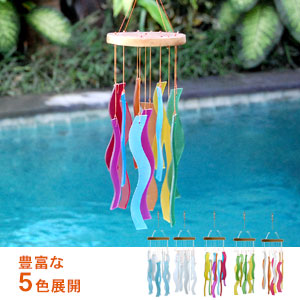 こちらのウインドチャイム<リーフ>のカラーバリエーションも豊富で5色展開。それぞれに特徴を持ったカラーなので、
