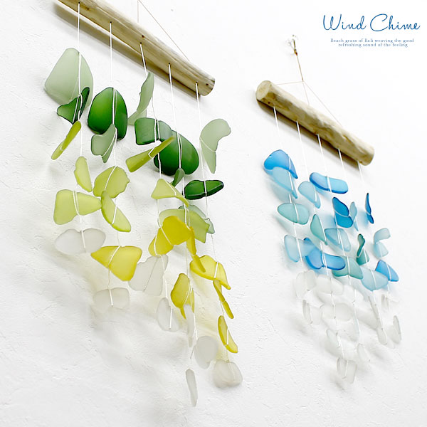 自然素材の木材の中から流木風の形状のものを選び、そこへガラスのパーツを吊下げます。 ゆらゆらと風に揺られてガラス同士が重なり合って奏でる音色は透明感があり、ちょっぴり疲れた心も癒してくれるはず。
