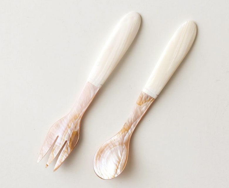 シェルでできた艶やかな質感が美しい、デザートスプーン。