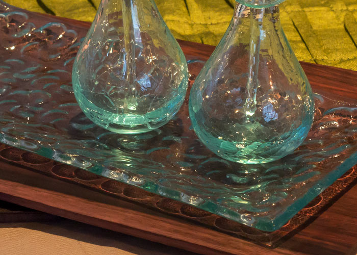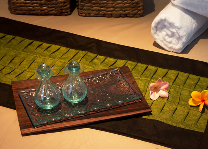 食器としてだけでなく、アロマボトルやソープ、雰囲気作りのためのフラワーなんかを置いて、スパ用のトレイとして使えます。