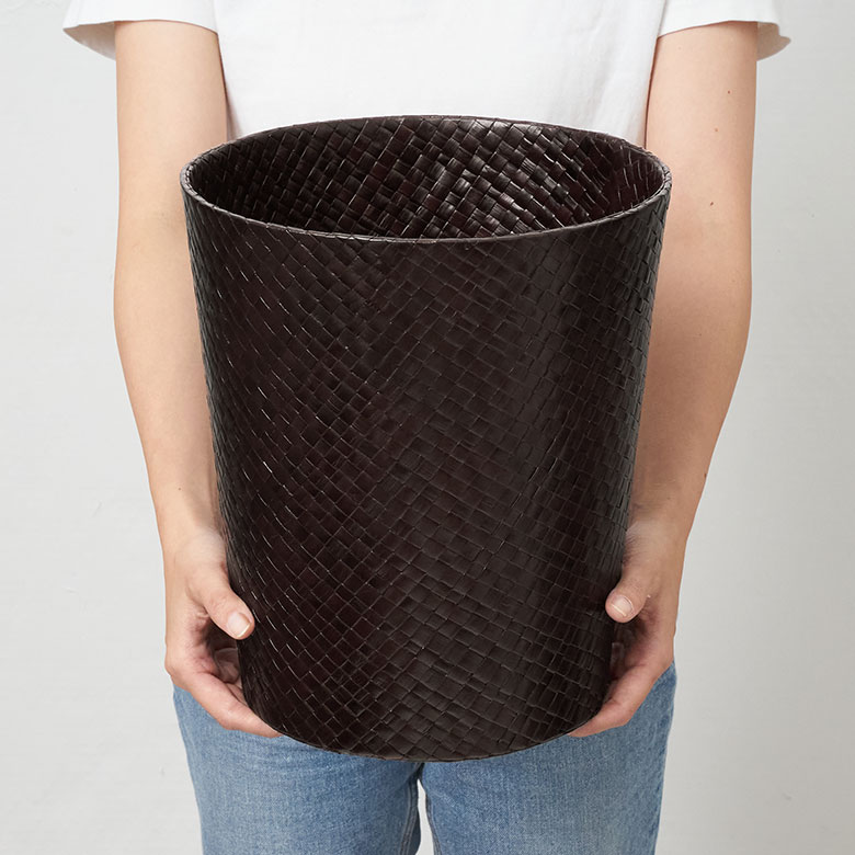 シンプルな円錐形のデザインと、美しい編み目が魅力的なラウンド型のごみ箱。