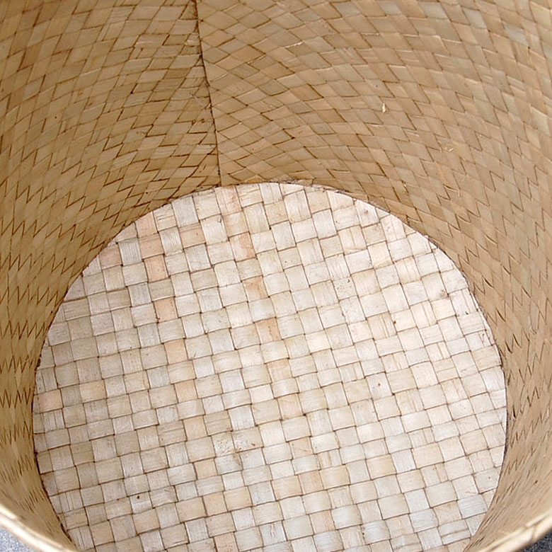 その葉を乾燥させ、手作業で編み込んで作られたアジアンごみ箱です。