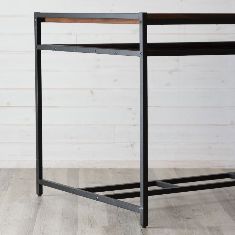 コーヒーブラウンの木部と、ブラックアイアンの脚がインダストリアルな