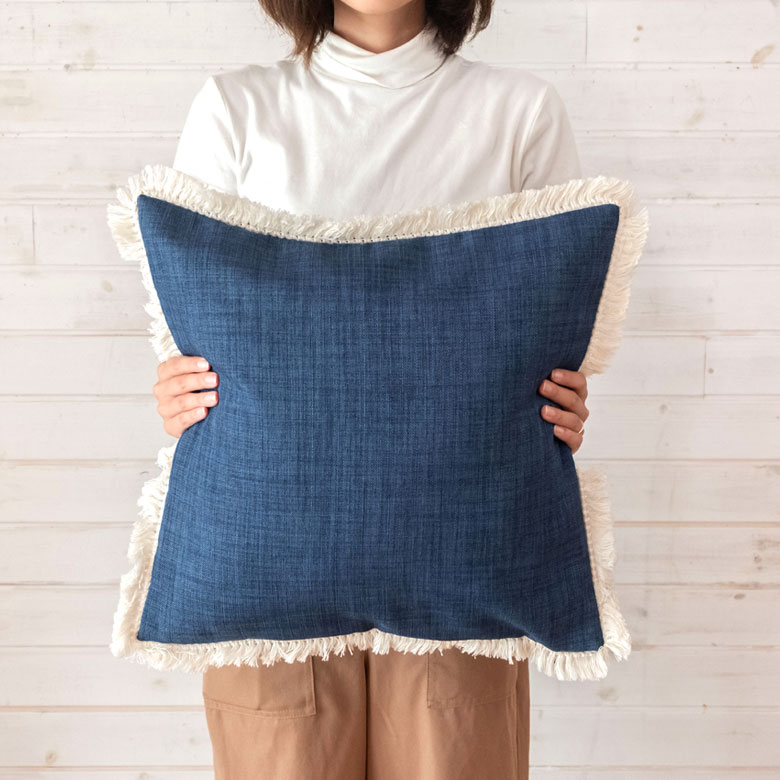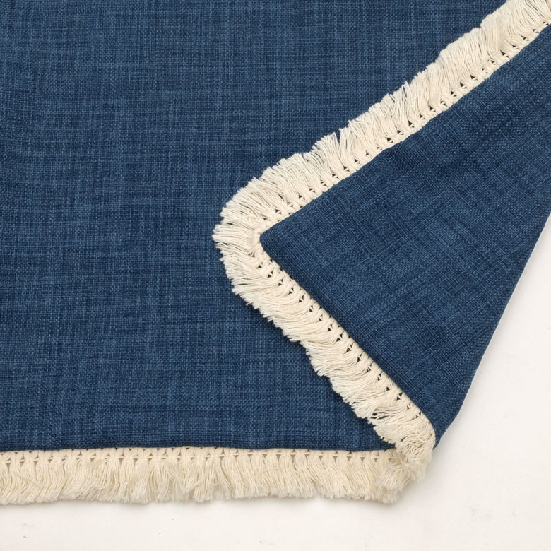 ざっくりとした織物調の生地を使用し、ぐるっとフリンジで縁取りました。