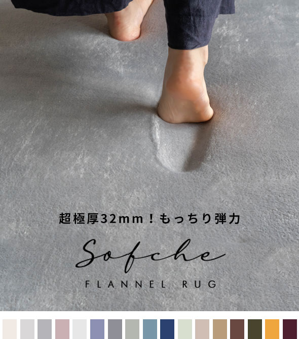 ![]() 超極厚32mm!もっちり弾力 [ ソフチェ ] 【当店人気NO.1ラグ】じんわり沈み込み、下から跳ね返すような不思議な弾力性。 |