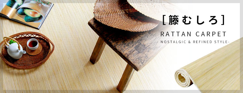 ラタンで作られるカーペットの最高峰、籐あじろカーペット。 籐の表皮を細く削ったものを“網代(あじろ)編み”で仕上げた高級品。 熟練の職人の技が光る、当店人気のベーシックなラグシリーズです。