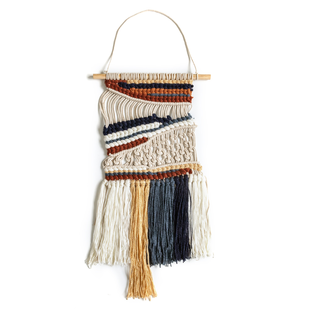 「マクラメ」とはひもや糸、ロープを結びながら幾何学模様を作る手芸のことで
