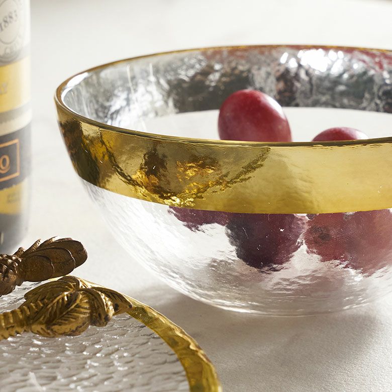 きらびやかなリムがアクセントになった万能サイズのガラスボウル みずみずしいソーダガラスとリムの縁取りがエレガントなガラスボウル小鉢直径約13cm[ 94842 ]