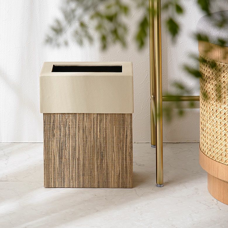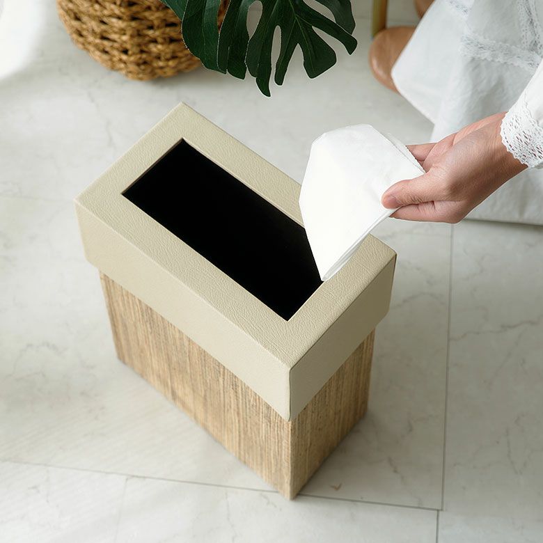 スタイリッシュ ふた付き カバー 被せる ダストBOX ごみばこ ゴミ袋 サロン スパ ホテル 店舗 天然素材 ボックス 屑籠 くずかご 二重構造 引っ越し 結婚 誕生日 祝い ギフト プレゼント ゴミ箱 ごみ箱 ダストボックス 9L 正方形 四角形 パームリディ 約W 20.5cm D 20.5cm H 30cm ナチュラル 見えない 袋が見えない 中身 フェイクレザー 合皮 屑入れ くず入れ リビング キッチン 寝室 モダン おしゃれ 北欧 リゾート 雑貨 インテリア アジアン [11772]